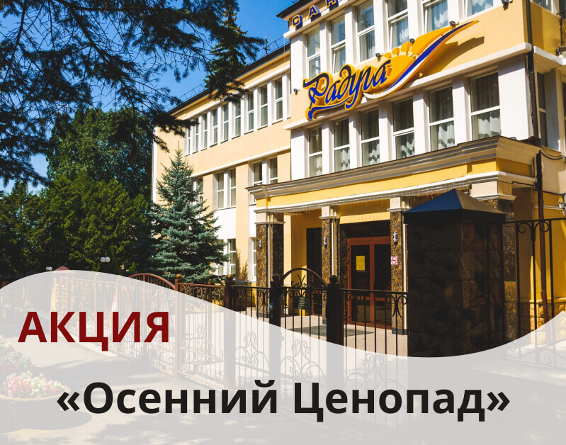 Акция «Осенний Ценопад» — это отличная возможность пройти оздоровительный курс или просто отдохнуть в уютной атмосфере санатория по привлекательной цене. Период действия акции охватывает осенние школьные каникулы и предновогодние недели.