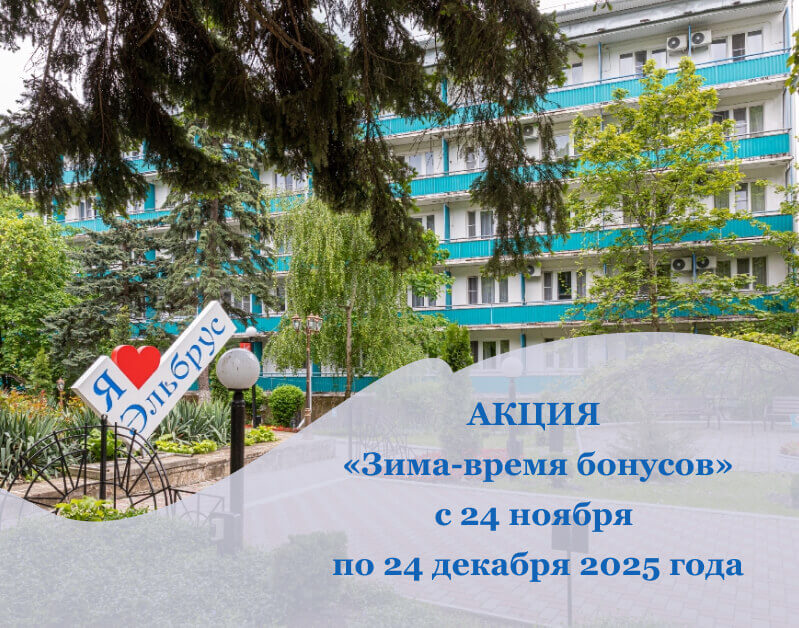 Санаторий «Эльбрус» объявляет о старте специальной зимней акции, которая делает оздоровление еще более выгодным. При покупке путевки по «Общетерапевтической» программе в период с 24 ноября по 24 декабря 2025 года гости получают ценный бонус — на выбор один из популярных видов лечебных процедур абсолютно бесплатно.