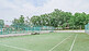 Территория зеленая, на ней расположены спортплощадки, открытый бассейн